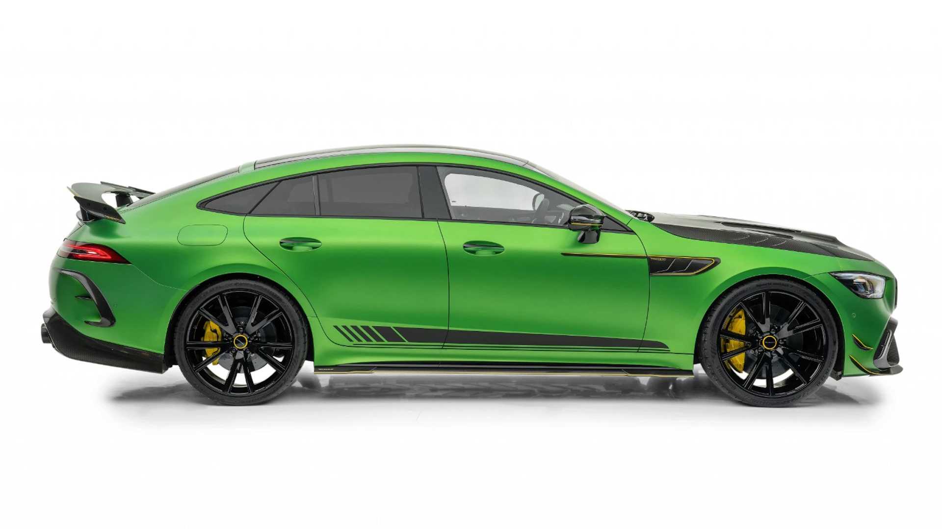 El Mercedes-AMG GT 63 S E Performance by MANSORY es una versión altamente personalizada y radical de la berlina de altas prestaciones de Mercedes-AMG. Parte del GT 63 S E Performance —un híbrido enchufable con motor V8 biturbo + motor eléctrico—, pero se lleva al extremo en diseño y potencia gracias al preparador de lujo Mansory.